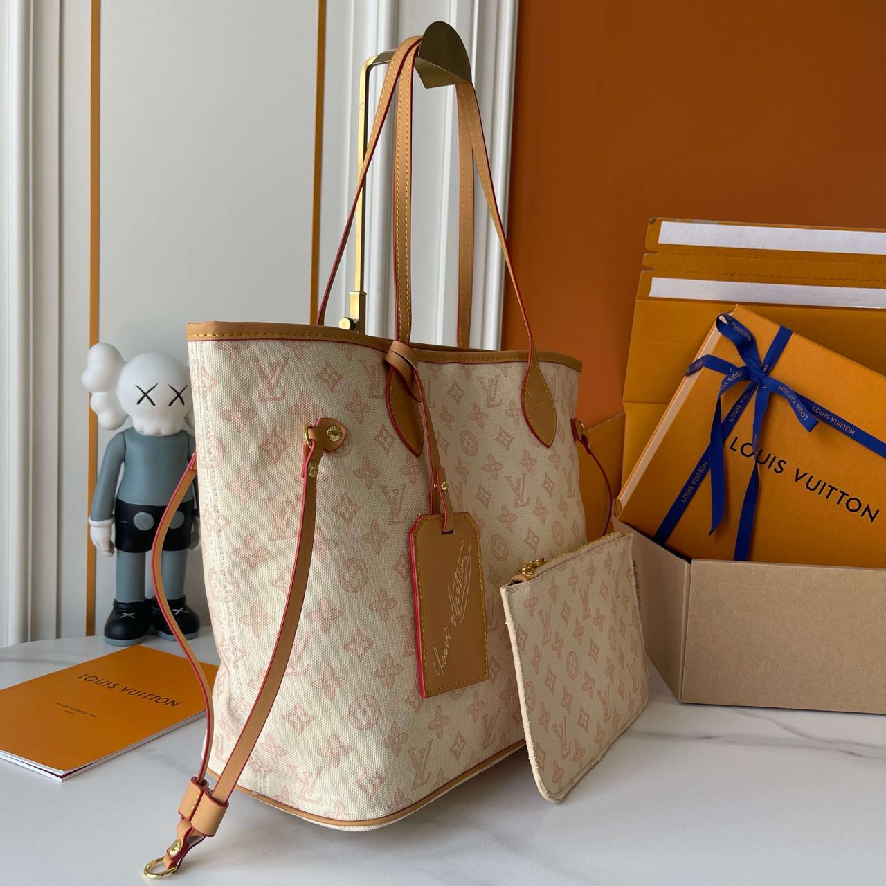 Este bolso Neverfull MM, una auténtica pieza de coleccionista, rinde homenaje al legado de Louis Vuitton y al emblemático motivo Monogram, que cuenta con más de 130 años de historia. Inspirado en un libro de registro, el icónico patrón se presenta en una atemporal combinación de colores sobre lona. Este modelo de gran tamaño permite llevar los imprescindibles de diario, como un ordenador portátil, y cuenta con un bolsillo de rayas con cremallera para asegurar los objetos pequeños.